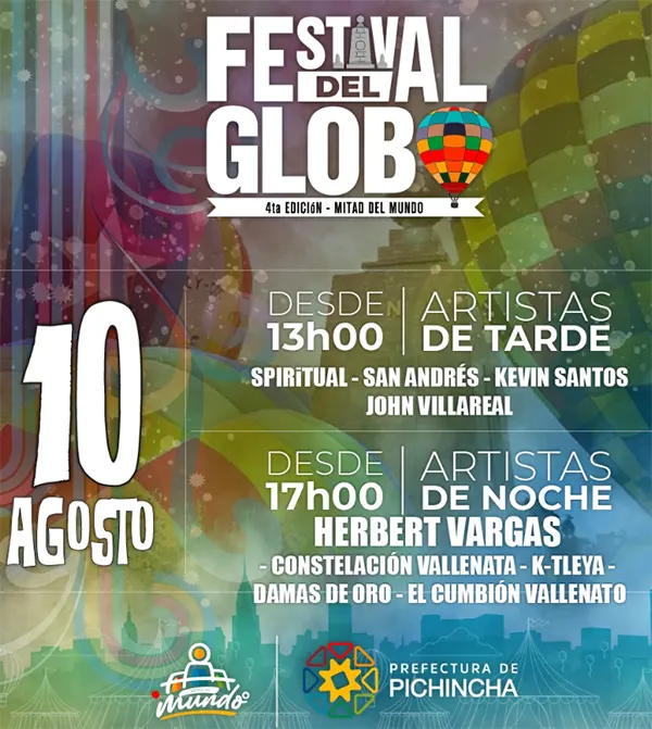 Del 08 al 11 de agosto del 2025 desde las 05h00 hasta las 08h00 se realizan un show aéreo con 18 globos aerostáticos, luego, los presentes podrán disfrutar de ferias y shows artísticos hasta las 17h00.