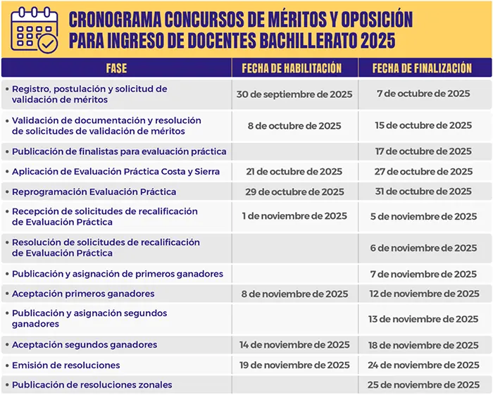 Proceso de inscripciones 2025 para docentes BACHILLERES en Ecuador que quieran participar en el Concurso de Méritos y Oposición en busca de una vacante en el magisterio.